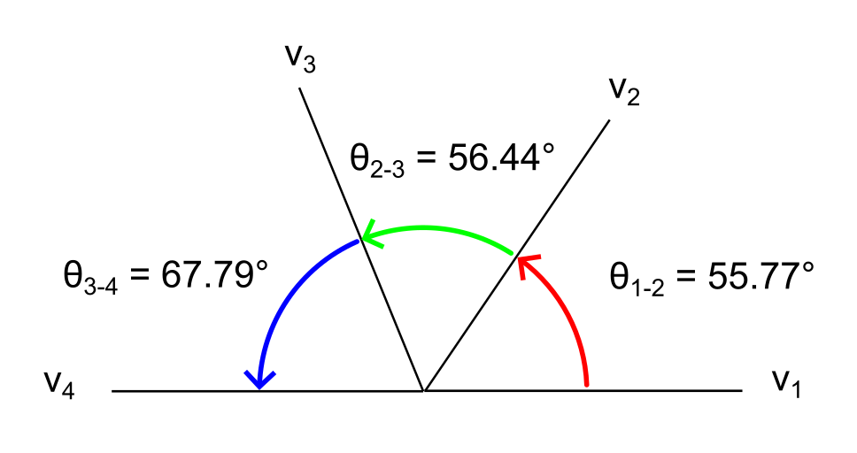 \theta_{3-4} = 180 – \theta_{2-3} – \theta_{1-2} \approx 180 – 56.44 – 55.77 \approx 67.79 [^\circ]\tag{9}$$