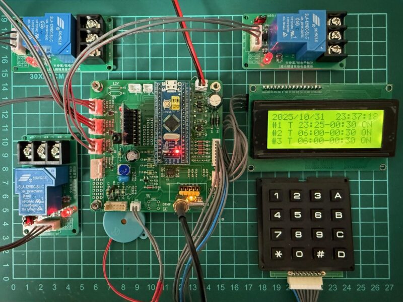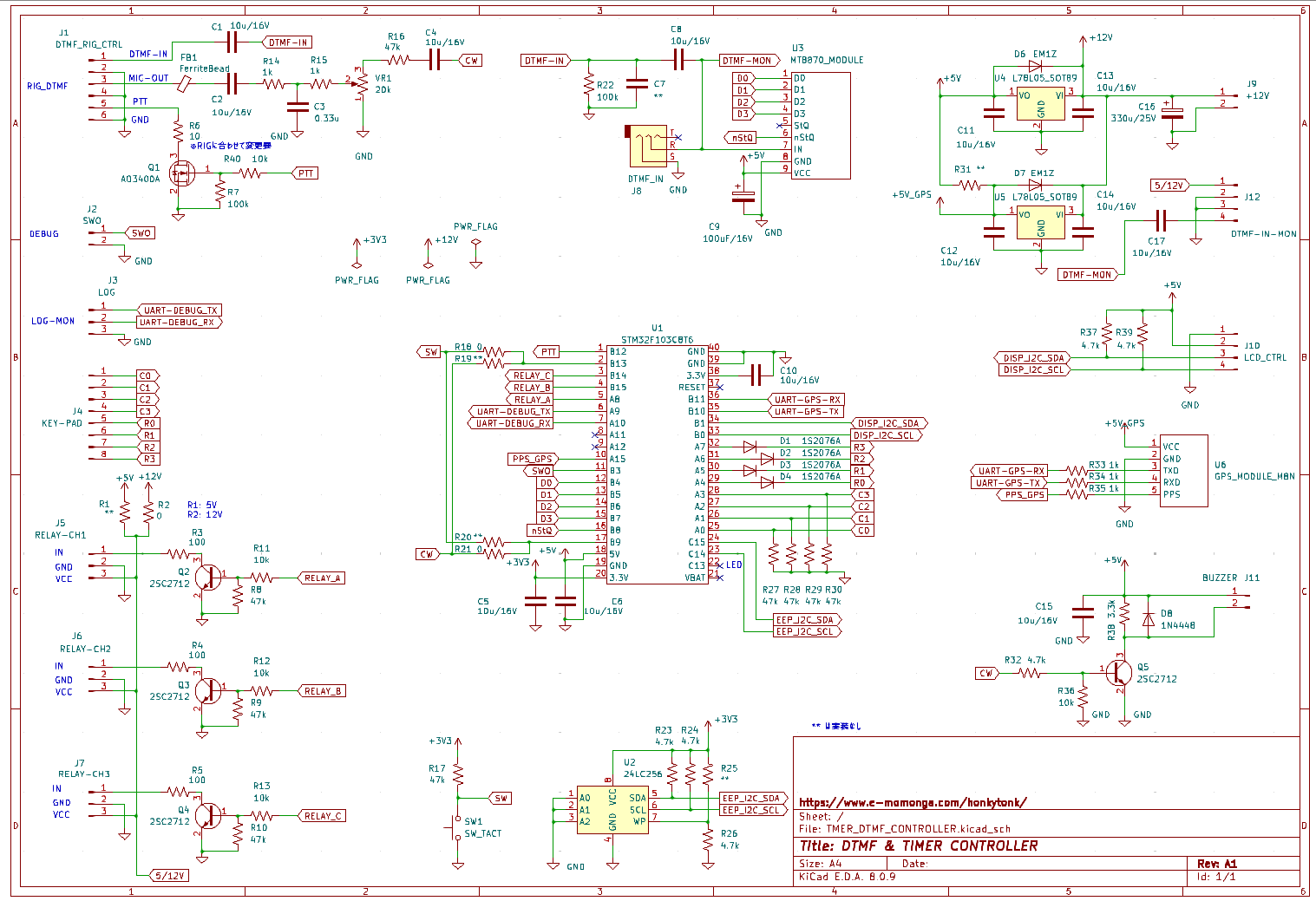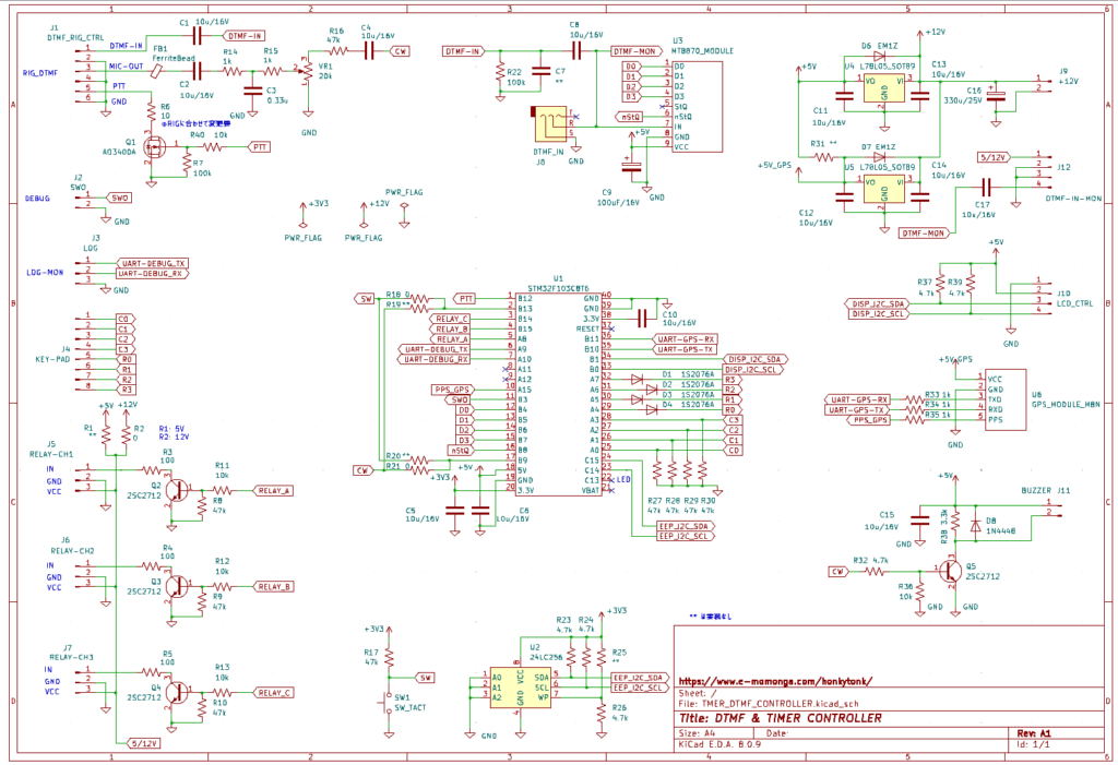 ローカルの局長さんから、太陽電池とバッテリーで動作しているレピータを夜間に停止して、バッテリー消費を抑えたいということで、以前作った「DTMFコントローラー」にタイマー機能を追加したものを製作しました。