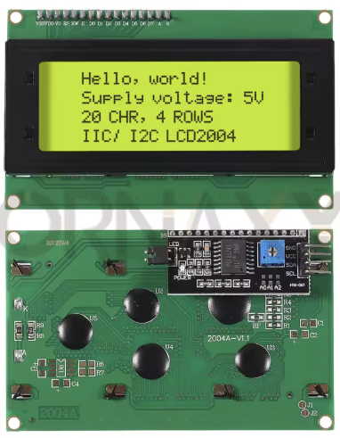 I2Cインターフェースがついた LCDモジュール SC2004 (20文字x4行) です。