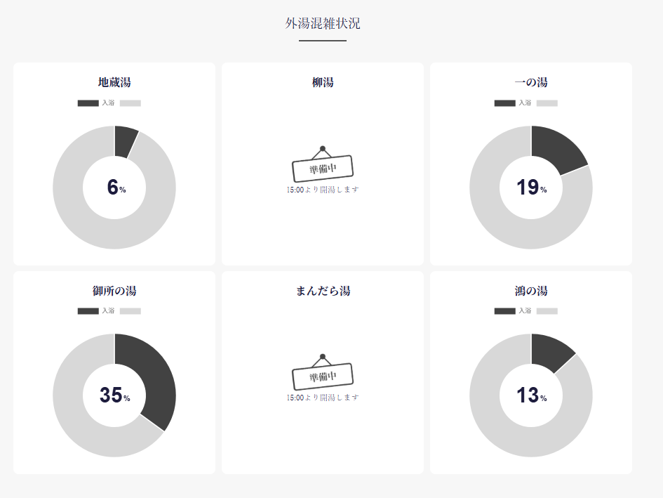外湯の混雑状況がネットで確認できるようになっていました。