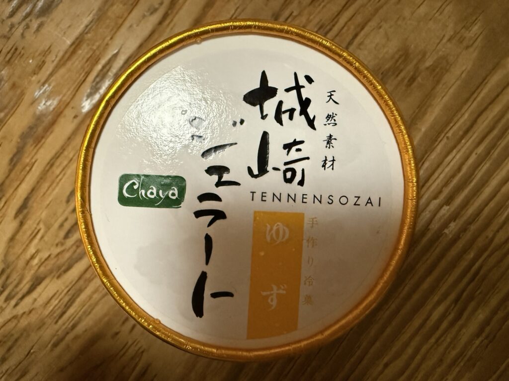 地蔵湯から川をはさんで向かい側にあるコンビニで、「城崎ジェラート(ゆず)」を購入しました。スッキリして美味しい!